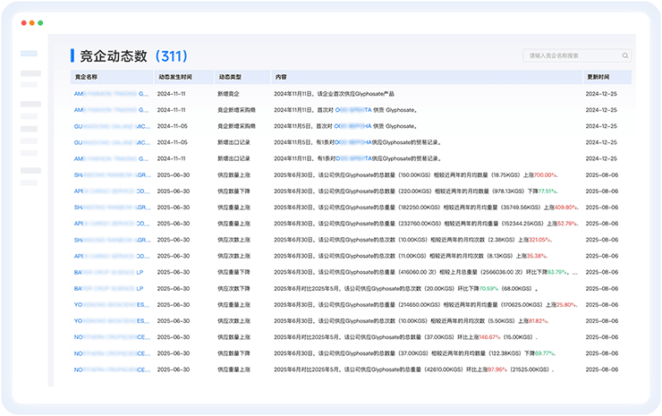 支持多维度筛选与管理;智能分析竞企供应链、量价等;智能监测竞企动态
