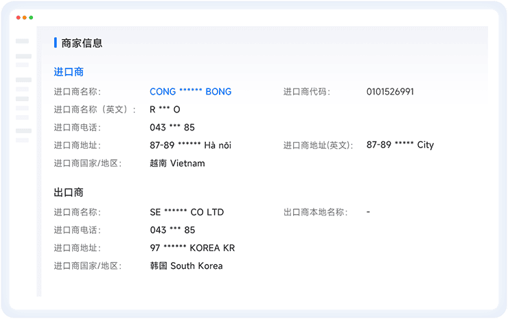• 涵盖 228 个国家和地区,累积100亿+条贸易交易明细