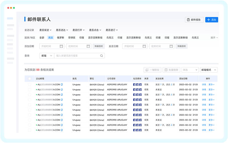 凯发K8外贸通智能生成点击、打开等发送效果可视化报表,随时改进跟进策略,避免客户流失;根据效果调整营销策略
